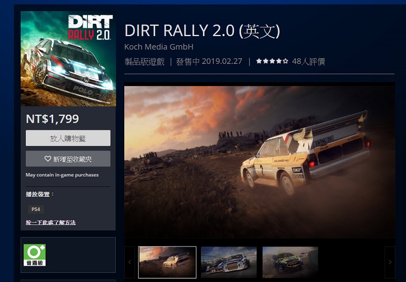 《大地長征:拉力賽 2.0》為越野賽車遊戲,在遊戲中將能駕駛超過50種史上最強力的越野賽車,包含歷史上及現代的各種拉力賽車如VW Polo GTI R5、Mitsubishi Lancer Evolution X及Citroen C3 R5,在紐西蘭、阿根廷、西班牙、波蘭、澳大利亞和美國等全世界最具代表性的拉力賽道上披荊斬棘,並能創建屬於你自己的車隊,雇傭員工並根據自己的選擇來擴展車庫,且在日常、周常以及月常挑戰中與整個DiRT社區進行比賽,參與全球排名和事件。《大地長征:拉力賽 2.0》(英文) 目前PS Store售價為NT$1799元。