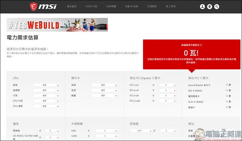 (MSI電力計算網址)