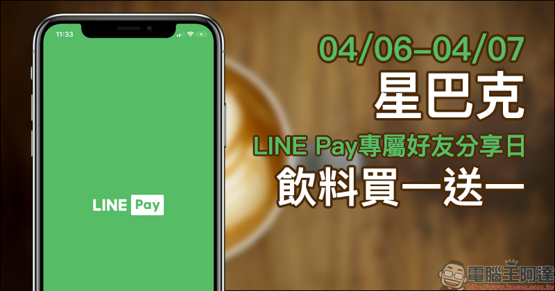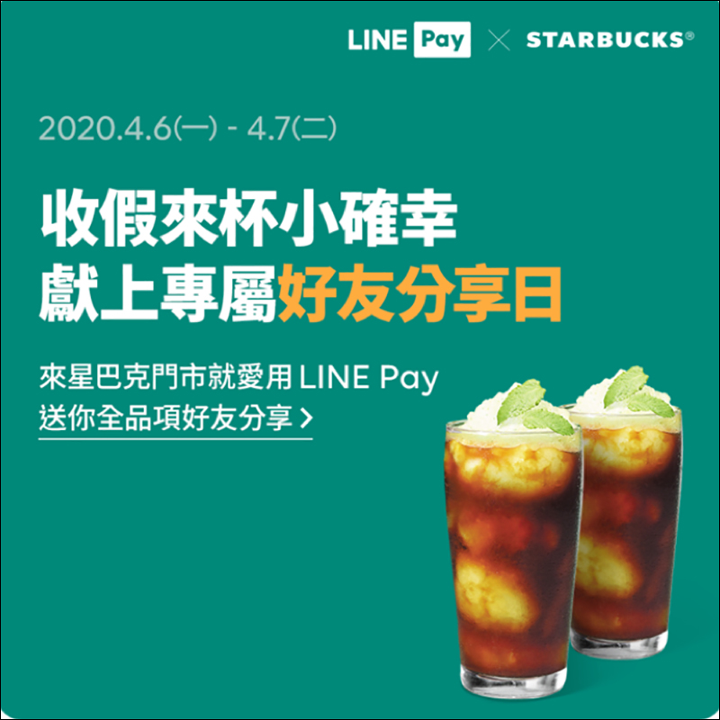 星巴克 LINE Pay專屬好友分享日,飲料買一送一活動(4/6-4/7)