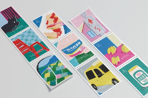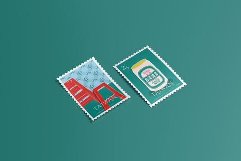 在你心目中最具台灣味的圖像是什麼?JUPE是由兩位女設計師組成的平面設計團隊,她們設計了11款最經典的台灣印象,包含揚名國際的珍珠奶茶、遊子最想念的早餐店蛋餅、辦桌喜宴會出現的紅色塑膠椅,還有台灣最美的風景石梯坪...等,總共11款郵票,用鮮豔的色塊描繪出他們心中最「台」的景象,在網路上引起不少討論。