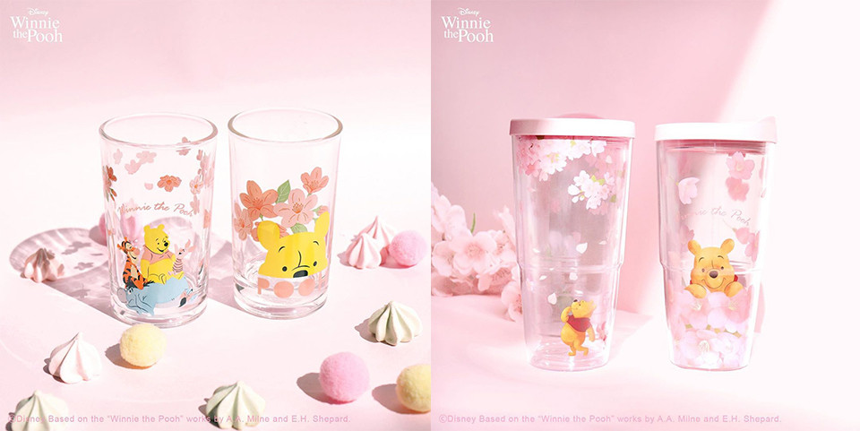 「玻璃杯」跟「隨行杯」也是使用透明的杯身,杯身上都是超萌的小熊維尼搭配粉嫩櫻花的造型,充滿了春日浪漫氛圍~在家用玻璃杯,外出時帶著隨行杯,無時無刻都有維尼陪伴,維尼控絕對要擁有!