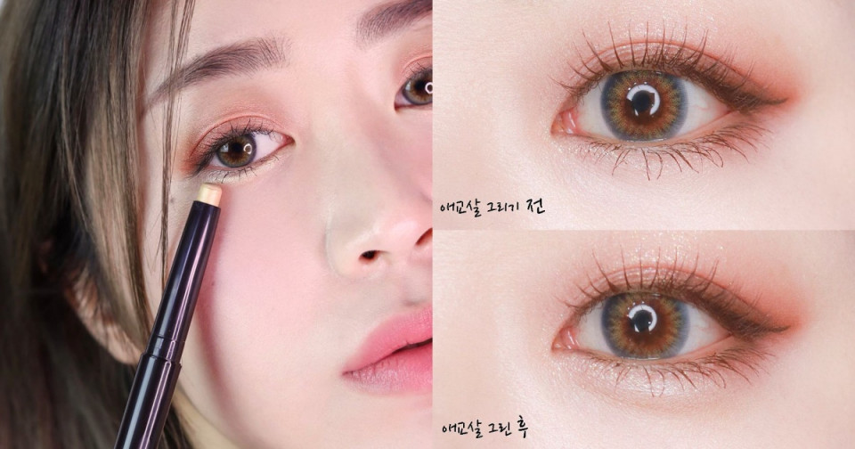 這一個方法更適合本身沒有臥蠶的人使用!不只可以打造出很自然的「撒嬌肉」,近看也不奇怪!首先用中間色的眉粉描繪眼下的臥蠶陰影,如果找不到臥蠶的人,可以先微笑確認臥蠶位置~