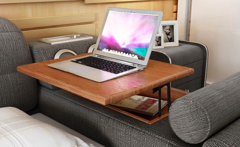 床組就有升降茶几,想在床上辦公、吃飯在床上就可以解決,完全不用離開床上。