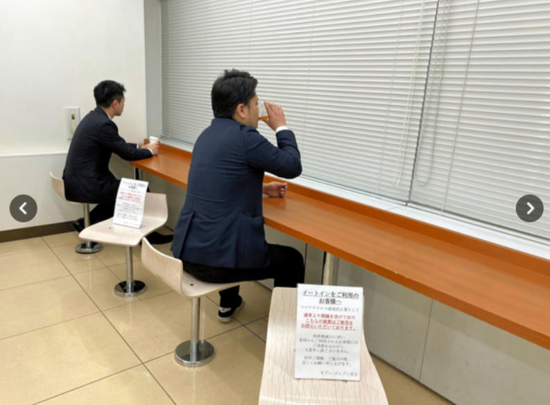 日本小七與LAWSON宣布門市對於武漢肺炎的因應對策,除了結帳排隊設定距離外,也在休息區將坐位間距拉大。結帳區加上透明塑膠材質的隔絕物,從天花板垂下約到成人胸部的位置以隔絕各種飛沫傳染的機會。