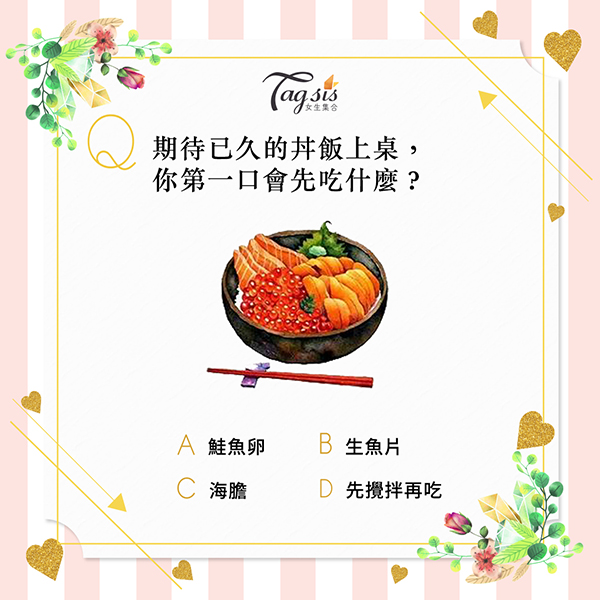 問題:期待已久的丼飯上桌,你第一口會先吃什麼?