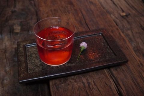 店主小白:「如果有客人問起有酒精的飲品,我會端出這杯風味偏苦的青草茶Negroni,代表他很可能是病入膏肓的酒精成癮症,必須來杯微苦的中藥味調酒治癒一下。」