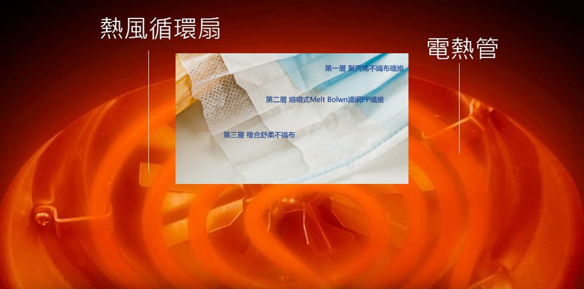 由於使用氣炸鍋產生的熱旋風溫度可達80度~200度(可設定),把主要材質是不織布的口罩放入氣炸鍋,因口罩重量輕,會被上升的熱旋風吹到上方的電熱管(發熱線)上, 鐵定造成口罩會被高溫燒掉、羽化成仙了!
