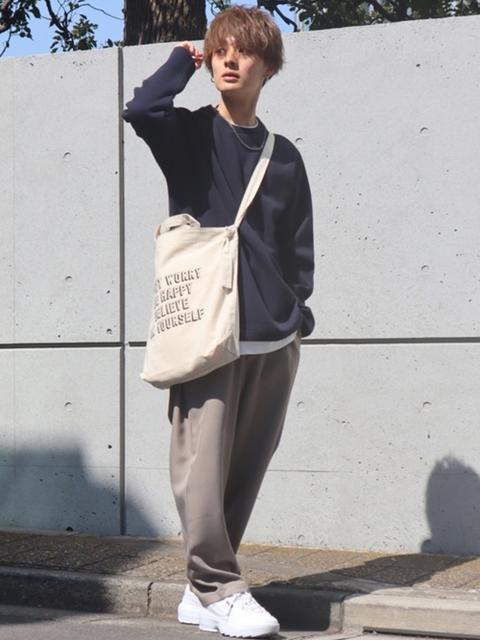 日常逛街或出遊經常穿著 TEE 營造舒適印象,不過對包款搭配每次都會陷入兩難,除了加上後背包之外嘗試運用手提或側背造型的帆布購物袋混合,即使是隨性穿搭素 TEE 與休閒長褲也很好看加分。