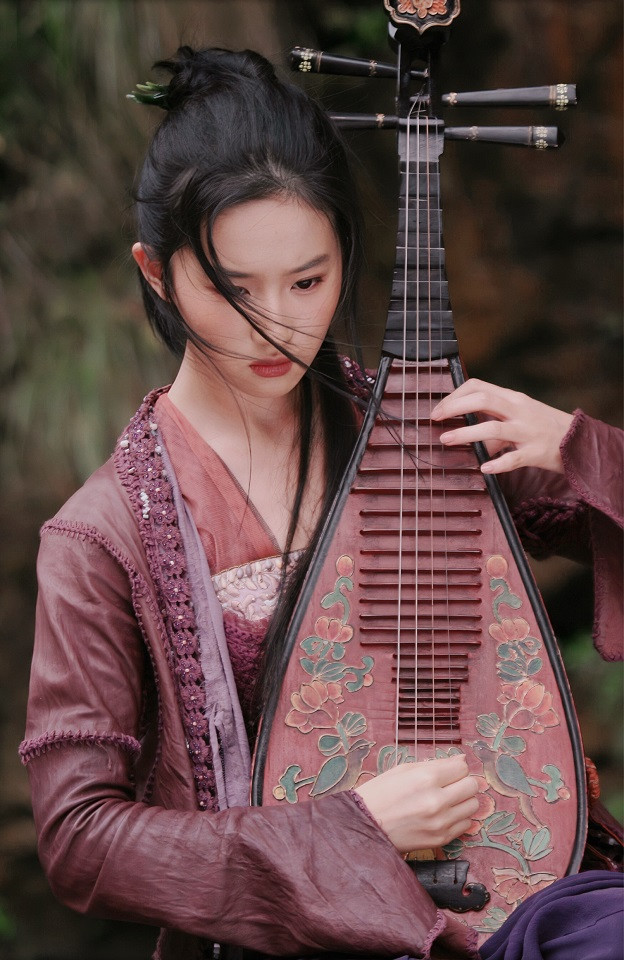 劉亦菲在電影中還化身為演奏的琵琶女,看起來很柔美,但眼神超級殺,很多影迷都被她這眼神電到。