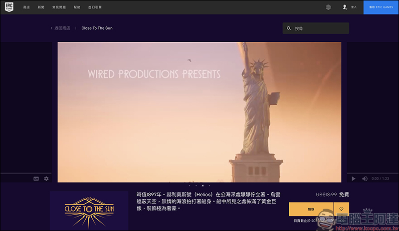 接著也確認另一款本次限時免費遊戲《Close To The Sun 靠近太陽》,原價為 13.99 美金(約合新台幣 421 元),現在一樣可免費下載: