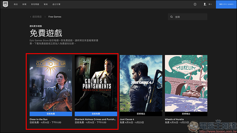 想在活動期間免費下載本次 EPIC Games 贈送的免費遊戲,可透過 EPIC Games 官網商店或開啟 EPIC 啟動器看到這次的限時免費遊戲。本次限時免費的遊戲包括第一人稱恐怖冒險《Close To The Sun 靠近太陽》和推理冒險遊戲《Sherlock Holmes: Crimes and Punishments 夏洛克福爾摩斯:罪與罰》,免費下載期間自即日起至 4 月 16 日晚間 11 點截止。