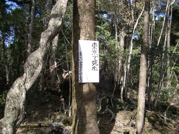 附近居民的留言「在東京死吧」,也就是叫自尋短見的人不要在這裡自殺。