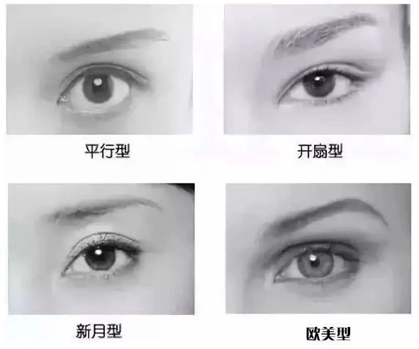 雙眼皮大概分為四種類型:平行型、開扇型、新月型和歐美型。