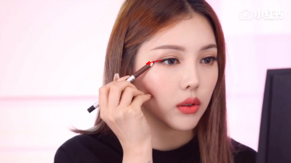 不過這邊有個關鍵技巧,如果上揚眼線的顏色畫得太淺,反而會讓眼睛看起來更加下垂,因此要在結尾處稍微加粗,保留一些厚重感會更好。