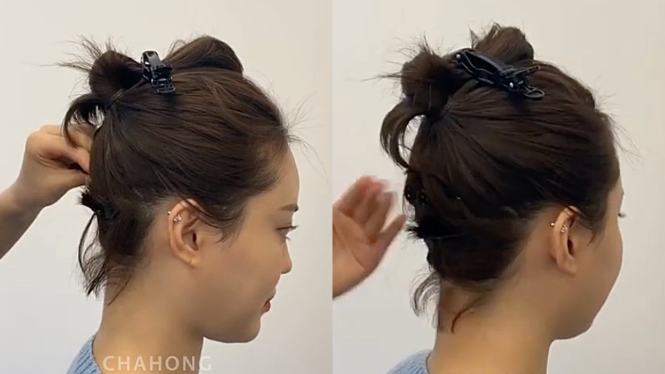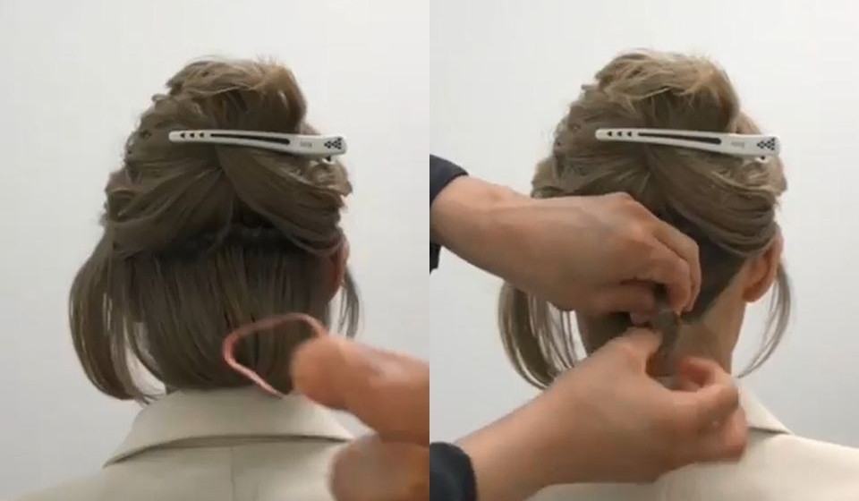也就是說,想要短髮收得很乾淨,這樣「分層綁」是關鍵,可以將頭髮收得較為乾淨、脖子也比較不黏頭髮。