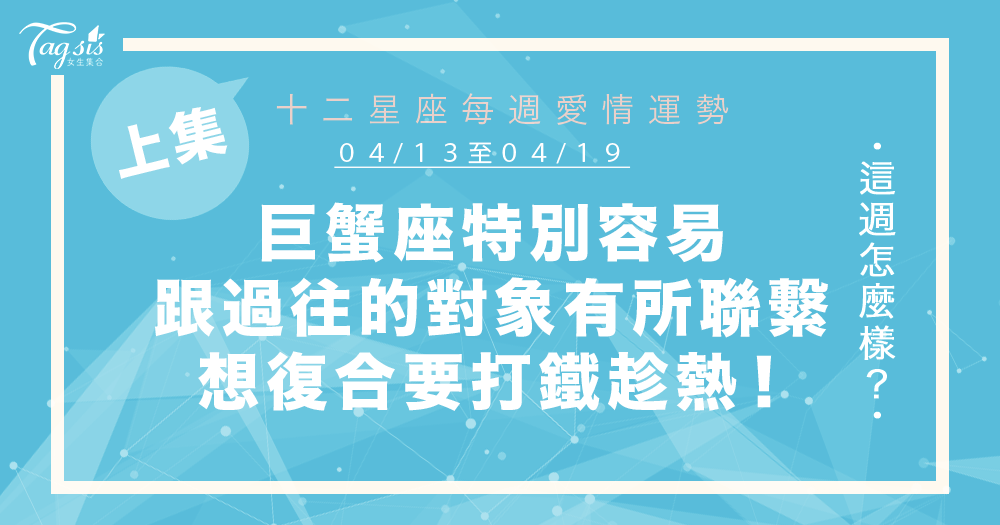 【04/13-04/19】十二星座每週愛情運勢 (上集) ~巨蟹座特別容易跟過往的對象有所聯繫,想復合要打鐵趁熱!