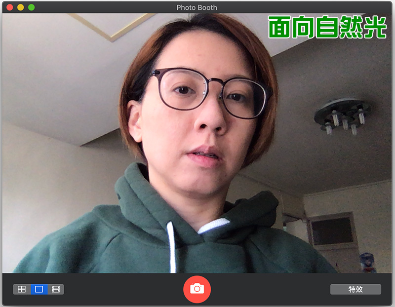 在燈光不佳的環境下,應該是所有筆電所配備的鏡頭都會死掉一票,拍出的畫面不是黑就是糊,如果你並不想另外投資買進更好的視訊鏡頭,至少你要在照明上下功夫,好的光線幾乎能治癒大多數視訊畫面不好的問題。如果你家很幸運有自然光照射進來,請到窗邊面向光線來進行視訊通話,如果背向光源的話,你的臉會顯得更黑。如果家中並沒有自然光,其實你也不需要花大錢在各種照明花招上面,市面上有很多價格實惠的環型燈,或是善用你的書桌檯燈都能立刻改善你的視訊品質。