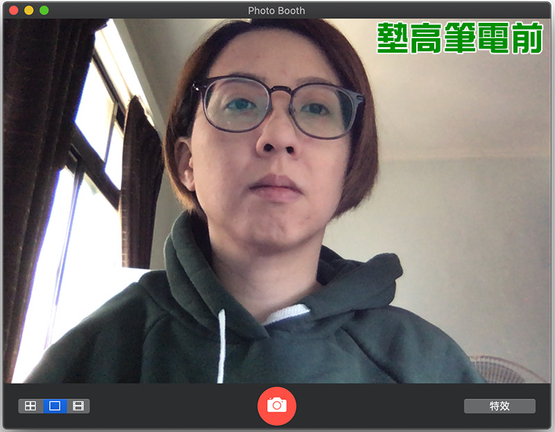 平常你會把筆電放置在最順手、最符合人體工學的高度來使用,但其實視訊鏡頭也因此始終以由下往上拍的角度來拍攝你的臉,遠遠不及視訊會議時的理想角度。這時候請拿出家裡最厚的一本書或是金屬餅乾盒,將筆電往上墊高,並且讓視訊鏡頭高於你的眼睛,這樣才是最佳的視訊拍攝角度。提醒大家墊高時要用厚實、有重量且堅固的物品,不要用空紙箱以避免筆電不穩。