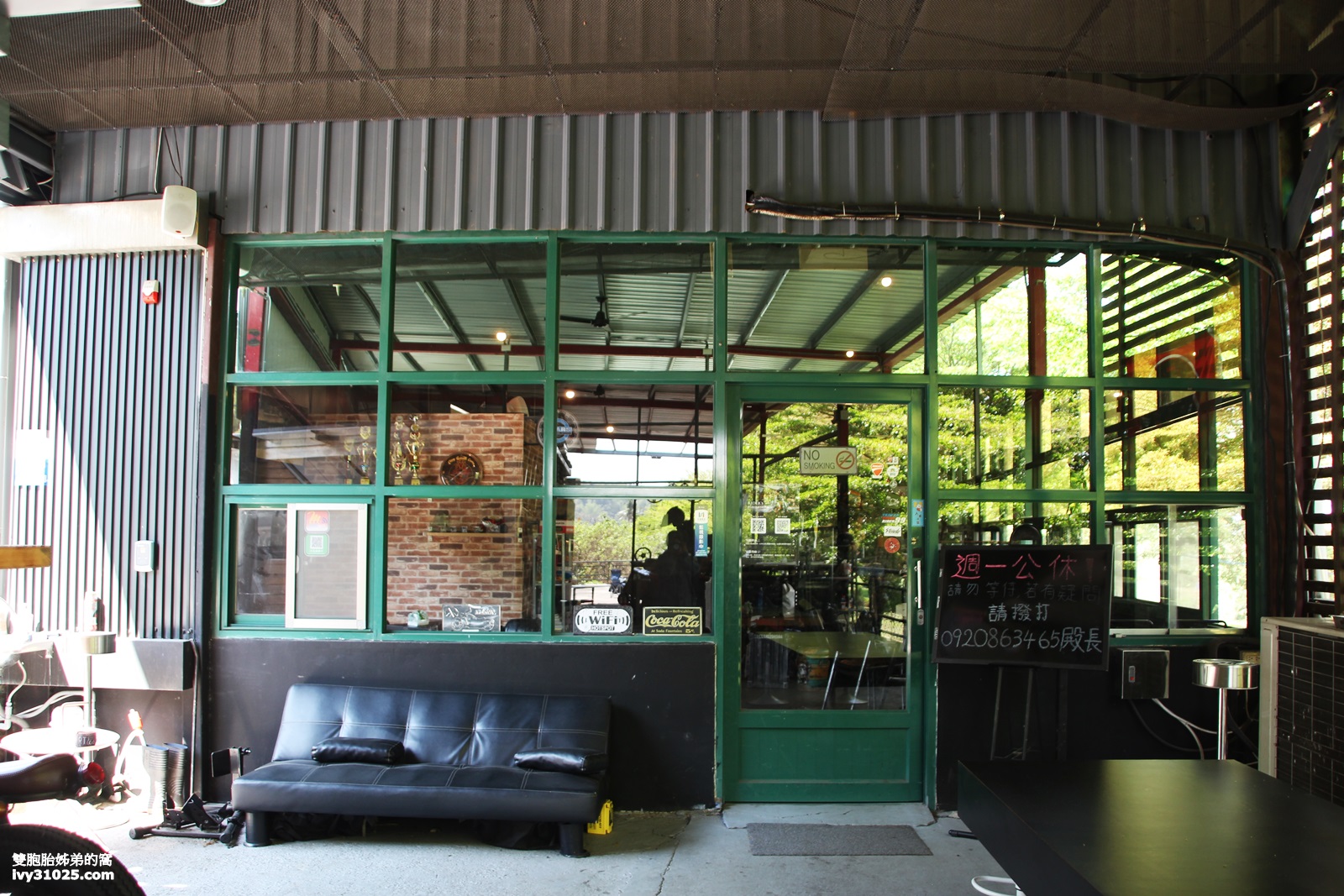 重型機車更換零件的同時,可以到後面的咖啡簡餐餐廳或是外面吹著涼涼的風,喝個飲料吃點心欣賞風景也不錯,如果你是幫重型機車鏈子上油,也有美式馬清鏈上油套餐,簡單就地說就是來給車子鏈子上油需要花點時間,提供90元飲料[可補差價]+炸物任選,或是一家 人還這邊聚餐或是騎重機朋友相約來吃新鮮原味桶仔雞[需前一天預訂],還有披薩、義大利麵、簡餐等。