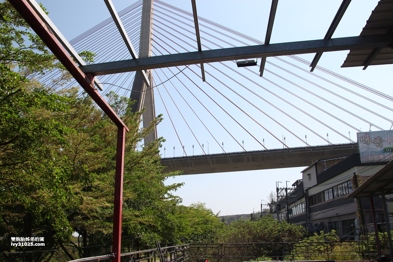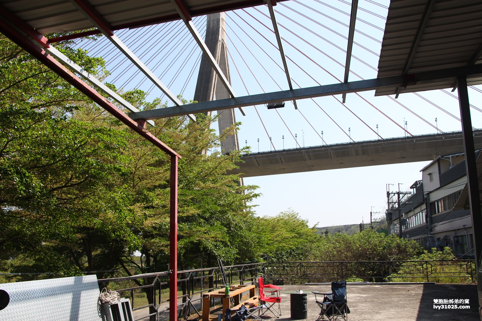夜晚沒有太陽時,可以坐在斜張橋下欣賞夜景。