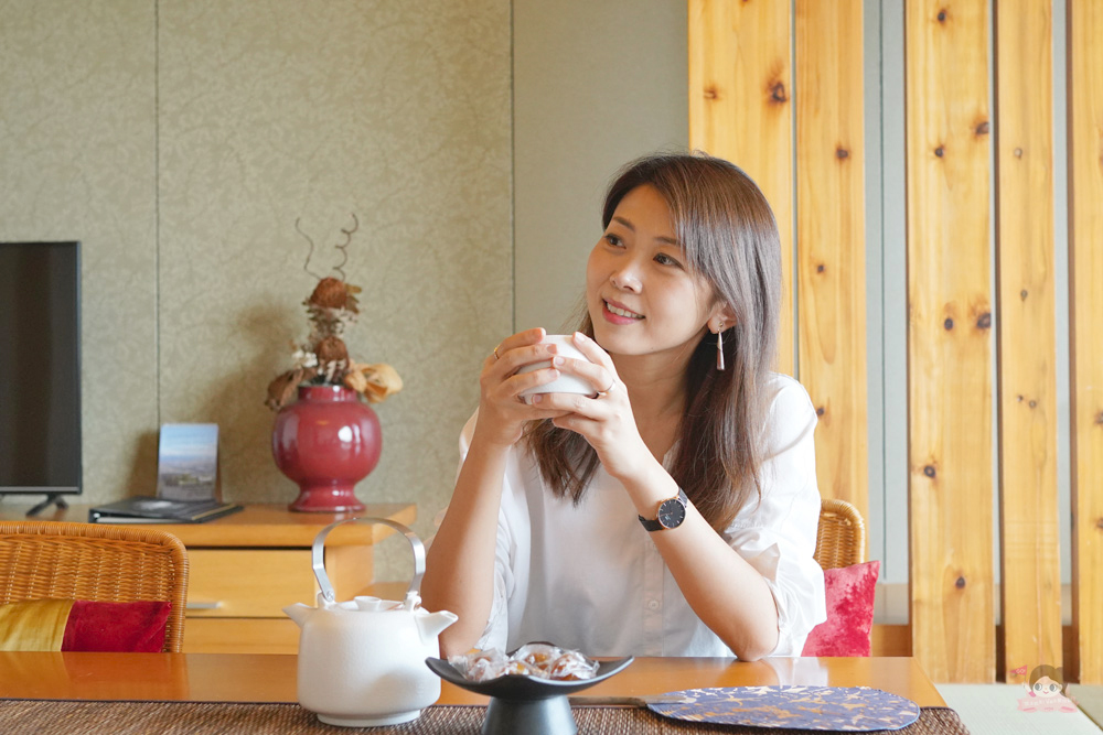叩叩!服務人員前來燒水泡茶,為我們奉上一杯熱騰騰的金棗香茶,以接地氣的宜蘭風味迎接旅人,剛好暖到心坎的溫度