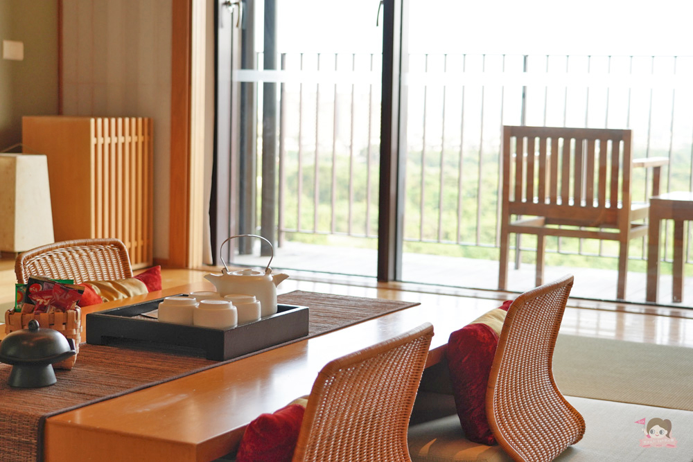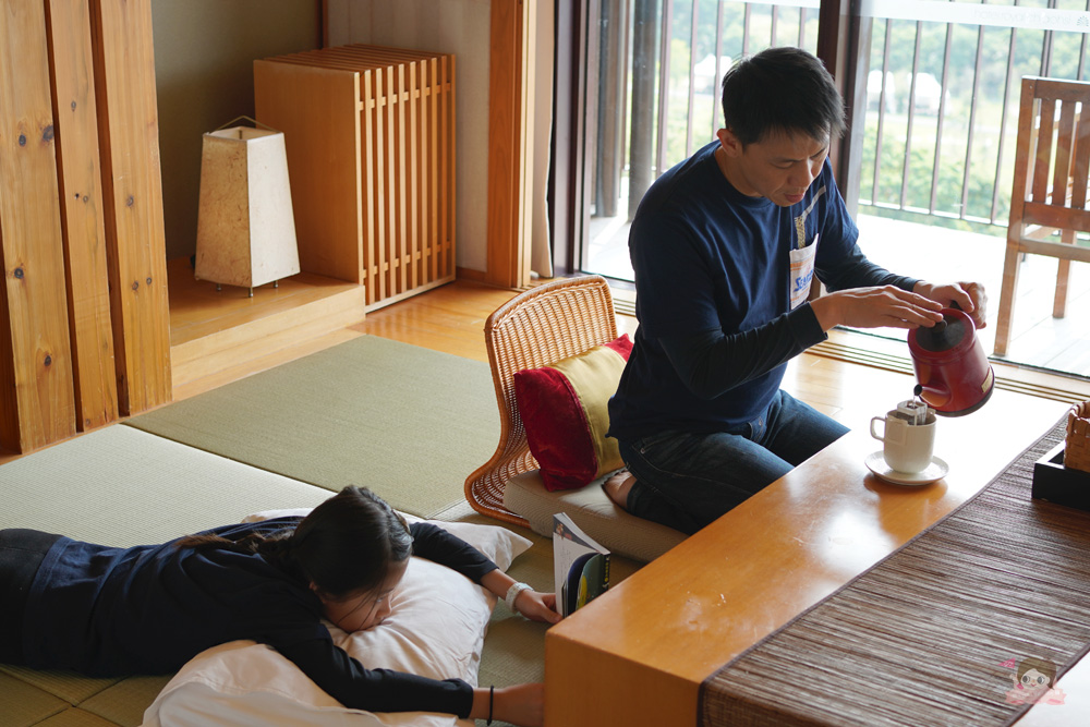 一家三口入住和室榻榻米房型,才一打開房門,陣陣榻榻米的藺草香氣撲鼻而來,大量原木建材裝潢,更顯樸質與溫馨