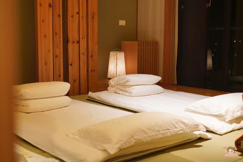 晚餐過後,房務人員過來敲門要幫忙舖床,女兒開心的說:「這和日本溫泉旅館住宿時一樣的耶!」