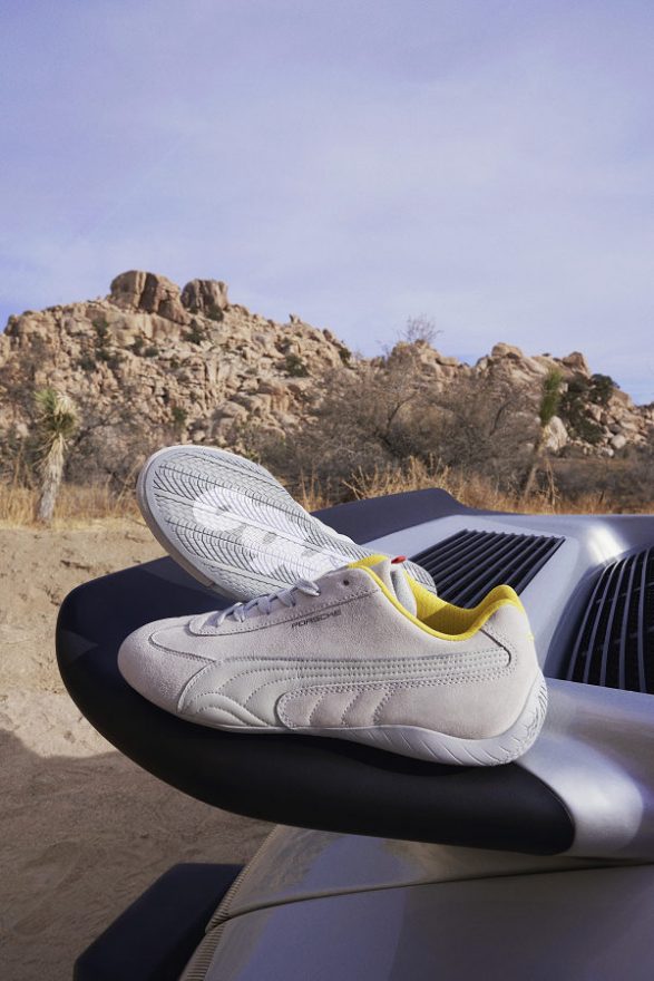 Forever Faster,PUMA 不斷透過運動鞋履領域追求速度的極限,不只是跑步,賽車也是 PUMA 品牌中重要的元素,去年與 Porsche Design 精品開始攜手,如今用 Porsche 廠牌旗下最著名的車款做設計,911 Turbo 在 1975 年因渦輪增壓引擎的研發成功大幅提升馬力,從此之後每個年代頂級跑車名單中都會出現他的名字。PUMA Porsche Legacy 系列共推出兩雙鞋款,都用象徵性的黃色去點綴系列共通點,Future Rider 黑黃之下更顯利落,相較於之前復古撞色更適合喜歡沉穩穿著的朋友;Speedcat Lux 賽車鞋就像 911 Turbo 的兩顆頭燈與渾圓線條,把鞋身縫線與車體出氣孔一比又更加相像,另外兩雙鞋都寫上的 Turbo 字體考究 Porsche 設計,展現雙方密切合作關係。
