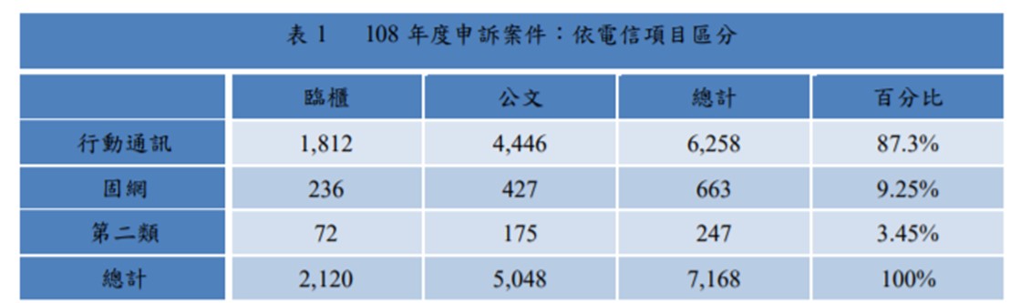 根據NCC網站資料,台灣2019年有關電信消費爭議申訴案件共有7,168 件,平均每月約597件。
