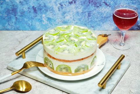 奇異果有果中之王的稱號,是超級水果之一。這個蛋糕以特殊配方製作檸檬海綿蛋糕,蛋糕中更加入檸檬皮,讓整體風味更為濃郁清香。