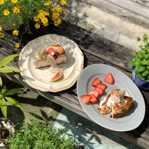 近期店家推出的兩款甜點新品,一款是把原本點播率很高的原味巴斯克乳酪(起司)蛋糕再加上爆漿芋泥;另一款則是清爽的無花果生起司蛋糕!