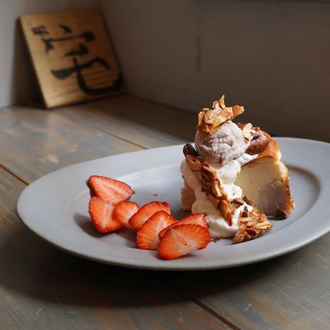 除了芋泥球以外,疍宅更在蛋糕生層灑上堅果與杏仁瓦片點綴增加口感,搭配一旁的草莓切片不僅外表顏值超高,還能提亮整體口感不膩口!▲