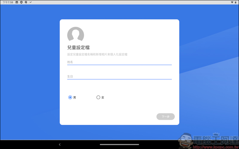 接著依照你家小孩的資料填上 :