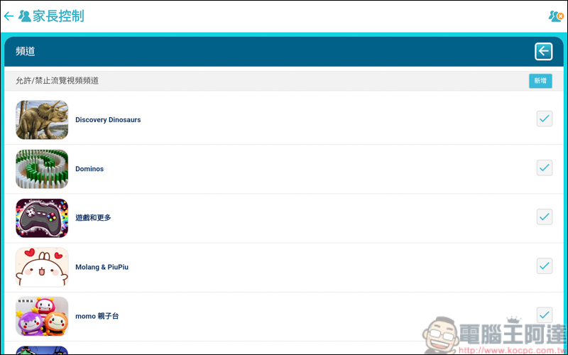 同時允許/限制小孩能用的功能或是觀看的頻道 :