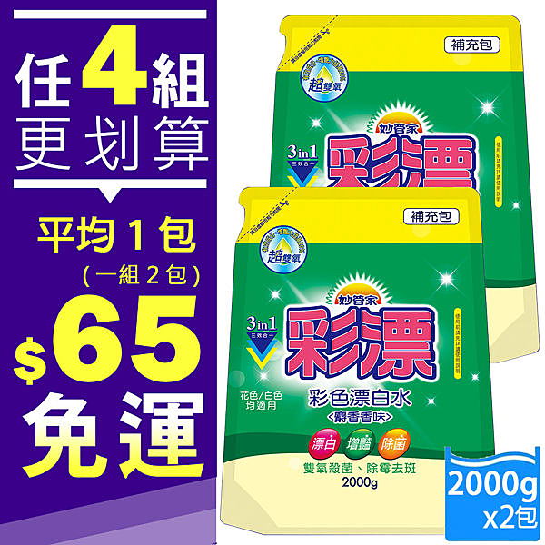 1.妙管家-彩漂新型漂白水補充包(麝香香味)