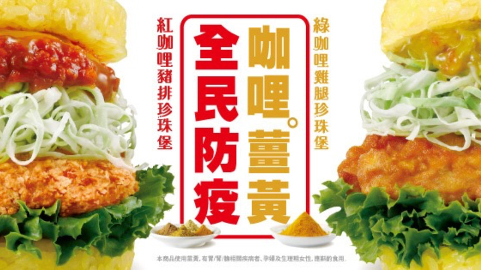 在人人防疫有責時,許多人對「吃」都非常講究,因此摩斯漢堡這次特別以「健康營養」為主打,在米漢堡製作元素中特別使用薑黃粉、花東栽種的台梗二號米結合,打造全新金黃色米漢堡,再加上咖哩控的最愛——綠咖哩,組成了「綠咖哩雞腿珍珠堡」,以泰式綠咖哩醬佐檸檬汁、九層塔、青椒、紅甜椒等打造多層次的口感與色澤,最後加入椰奶及優格中和辛辣味,搭配鮮嫩多汁雞腿肉,呈現濃濃的南洋風味!