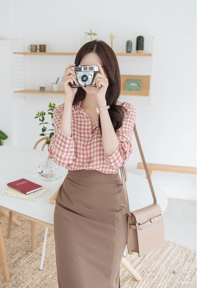 雖然襯衫搭上窄裙就是經典的 OL 穿法,但是只要把窄裙換成長及腳踝的長裙,再利用球鞋代替高跟鞋的話,看起來是不是就休閒多了呢?記得襯衫的扣子不要全扣,有一點開襟才不會看起來太嚴肅~