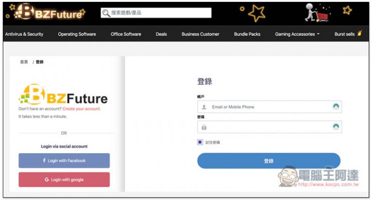 找到想買的防毒軟體或電腦工具後,點選下方 “現在購買”,會跳轉到登錄畫面,有帳號的人可直接登錄,沒有的人,就按右上角免費註冊: