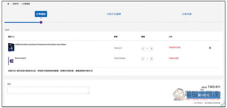 接著畫面可能會在跳回到活動頁面,如果有,請再次點選 “現在購買”,就會進到訂單確認步驟,檢查一下軟體名稱對不對、下方有沒有 Windows 10 Pro 序號。Windows 10 Pro OEM 序號原價可是要 NT$529,跟這次活動搭, 0 元即可拿到,超划算: