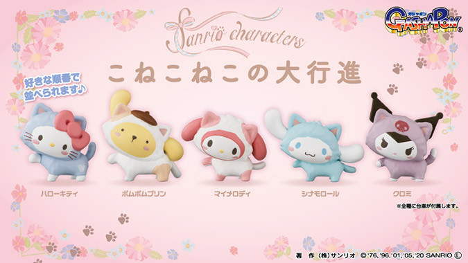 呼叫三麗鷗迷!三麗鷗家族繼前陣子化身成讓人超融化的貓咪娃娃後,現在又再度裝扮成小貓貓啦~這次三麗鷗推出了「貓咪扭蛋」,Hello Kitty、布丁狗、美樂蒂、大耳狗及酷洛米,通通變成五隻超萌的小貓咪,而且是設計成一個接著一個整齊地向前進的造型,就像現實中的貓貓們一樣~可愛度直接破表!