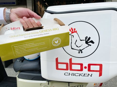 店家還打造了兩台印有「bb.q CHICKEN」可愛LOGO的外送車,看到外送小哥來了,代表你有口福了。
