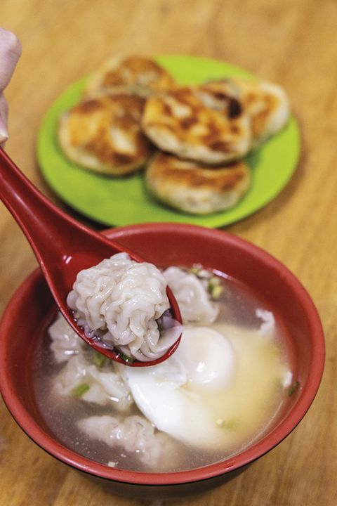 來這吃餅是一定要來上一碗餛飩湯,才是最在地的組合。老闆忙著煮跟裝盛餛飩湯,這動作也是幾乎沒有間斷過,現包的鮮肉餛飩相當的鮮甜,一口餅一口湯搭配著吃,真是過癮!點湯時千萬別忘了跟老闆說要加個蛋,這樣營養跟美味都兼顧了。