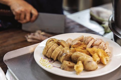 營業超過五十年還能排隊的老品牌,憑藉的就是店家的用心。攤上的大蒸鍋冒著蒸氣,一打開就看到大腸圈與各式豬內臟。這裡的黑白切,使用新鮮的溫體豬肉,處理得很乾淨,所以你大可以用力點,因為真的是物美價廉,豬心、豬皮、肝連、豬肺、嘴邊肉等,一不小心就點了一大盤。夾著薑絲,沾上醬料後,風味絕佳!