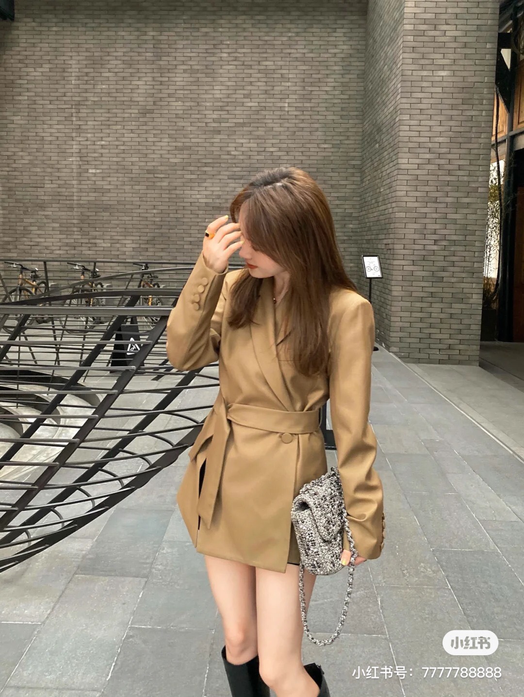 現在不少女身也會單穿西裝外套,變成另類的洋裝喔~既不失西裝的正式,又能帶點性感元素~超適合穿上高馬靴,這樣的穿搭顯現自己就是一名都會女子~