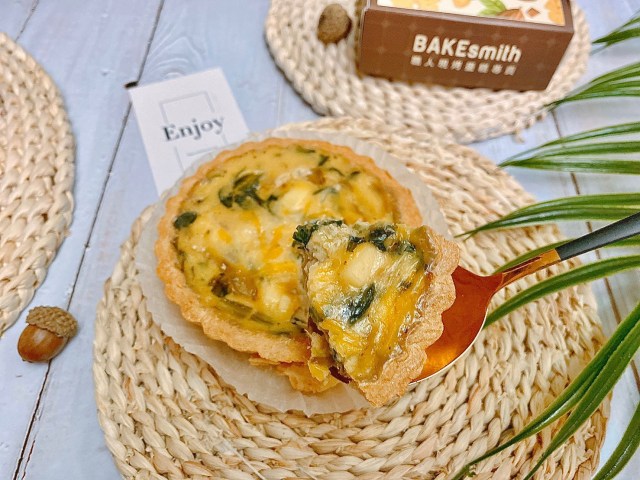 菠菜乳酪塔使用乳酪丁雙色乳酪絲,營養滿點的菠菜搭配雙色起司絲,再淋上蛋奶汁,簡單卻經典!