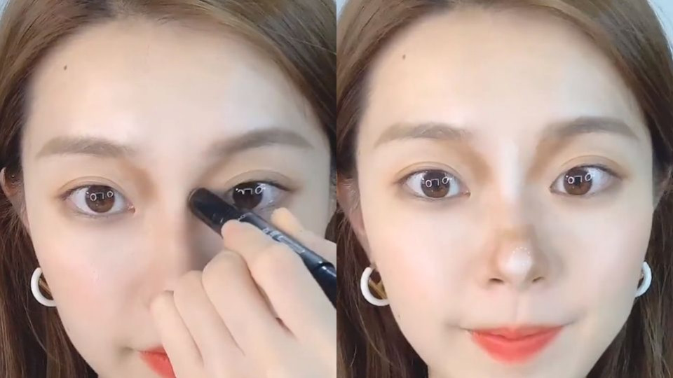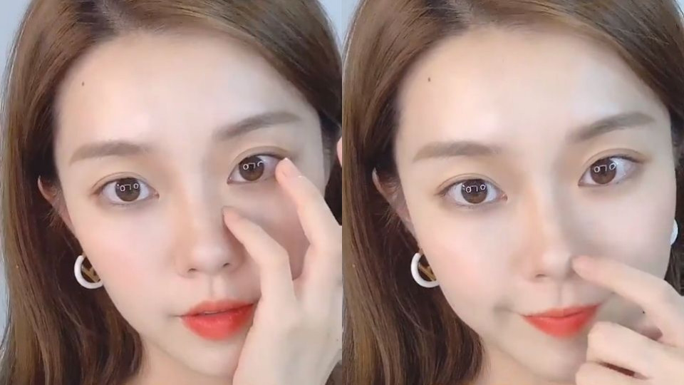接著拿淺色的遮瑕膏,補在剛剛說的要補的區域、以及整個鼻樑部位,也就是直接畫出一條筆直的鼻樑線條,之後再推開歪鼻就會看起來正很多!另外比起液態遮瑕、更推薦遮瑕膏,可以更服貼肌膚,修容效果更自然。