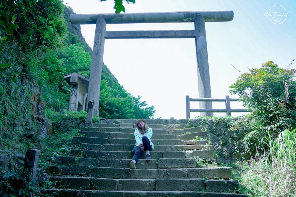 從金瓜石地質公園前往黃金神社的路途,沿路都是石階梯,可以說是整段路最累的一個階段。黃金神社又稱山神社,建於明治三十年(1897年)由日本礦業株式會社建造,原名為「金瓜石神社」,黃金神社居高臨下,可以眺望整個金瓜石地區!從金瓜石地質公園繼續前行,步道終點會跟草山步道、本山步道會合,再由這轉入本山步道,下行往黃金博物館方向大約1.4km,沿途將陸續經過本山四坑跟黃金神社還可以遠眺六坑斜坡索道遺址,再到黃金博物館,因此從黃金博物館也可以通往金瓜石地質公園。