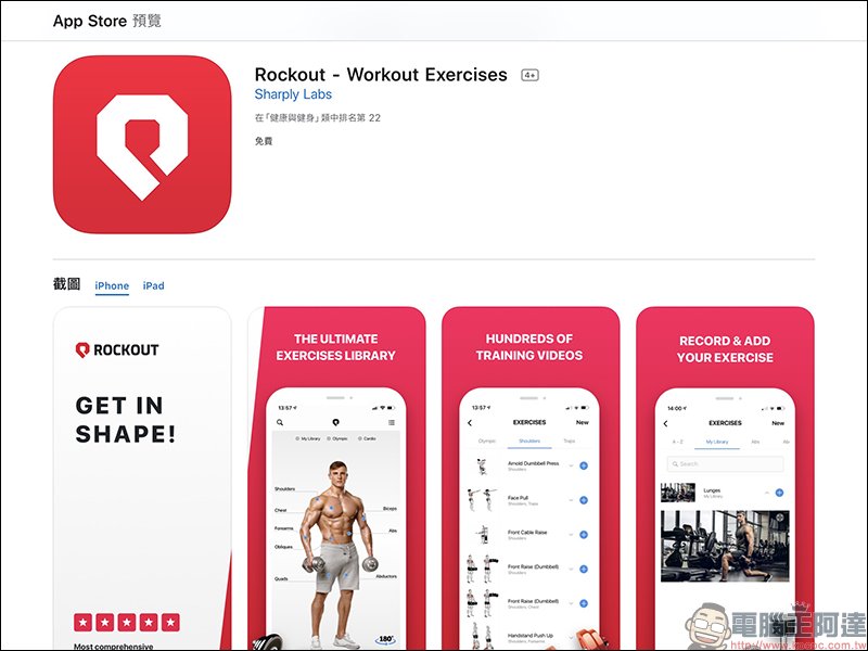 Rockout - Workout Exercises App 原價 4.99 美元(約新台幣 149 元),目前開放限時免費下載: