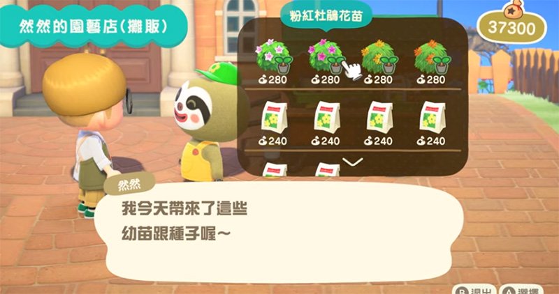 在這一代遊戲中,時不時會有攤販到廣場上來擺攤販賣,如果你的服裝店已經蓋好,目前會不定期前來的還有鞋、包、襪的攤商薛革,在接下來即將登場的是專門販售種子、樹苗的樹懶然然。跟著到來的還有最新的灌木叢,島上將能種植更多種類的植物,像是杜鵑、桂花等,不再只有闊葉樹、針葉樹與果樹三種選擇。