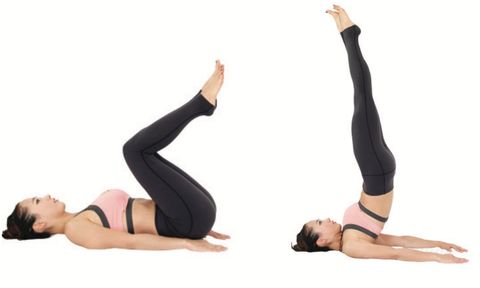 躺在地板上,在雙腿抬起的狀態下微微彎曲膝蓋,雙手請放在臀部下方。一邊想像著把骨盆往胸部的方向捲,一邊做卷腹。腳放下的時候速度要放慢,讓自己能充分地感受下腹部的刺激。一開始可能會比較不容易感覺到下腹部肌肉的運動喔!如果希望給肌肉帶來更多刺激,腳放下到接近地板的位置之後,可以接著做抬腿的動作。